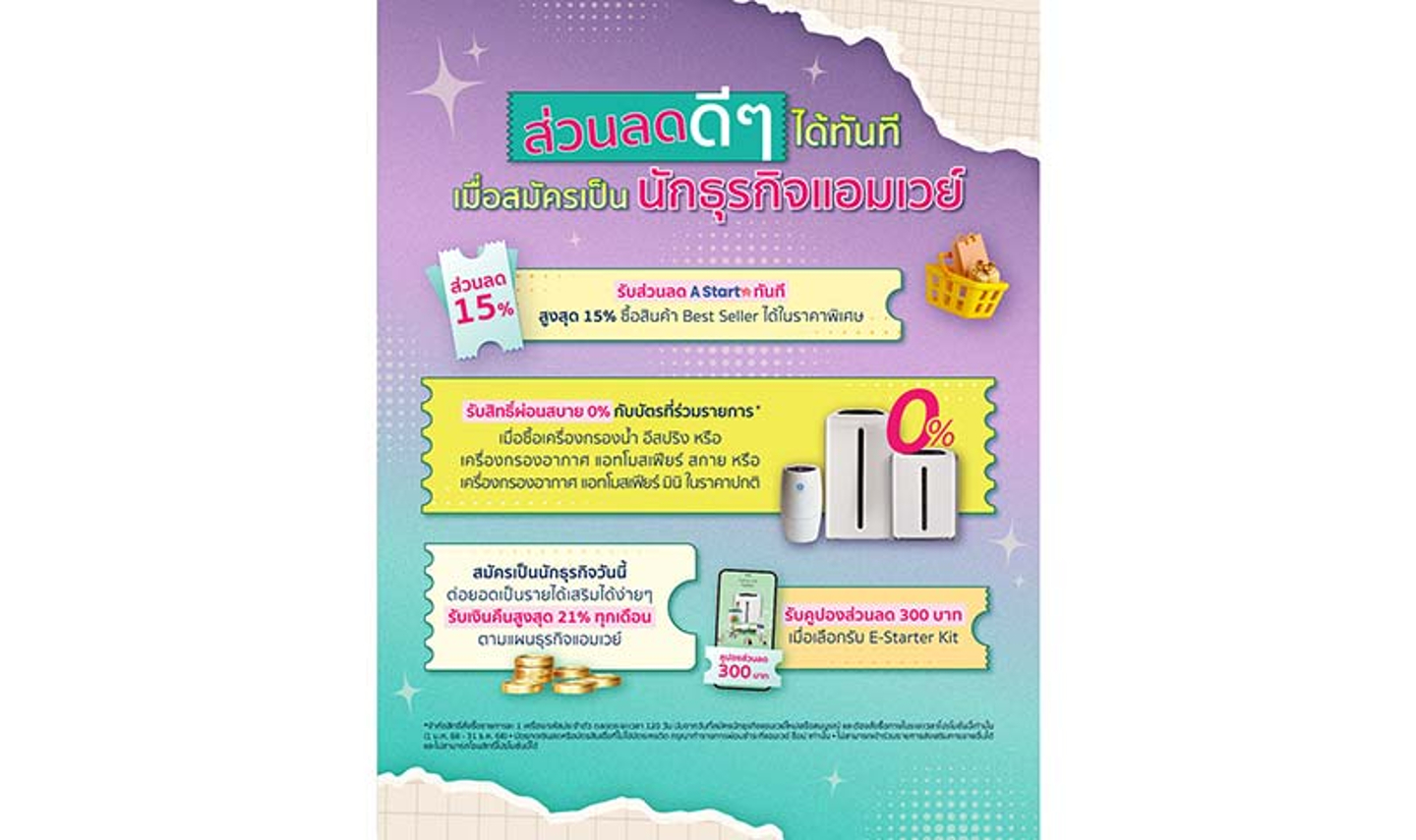 ส่วนลดดีๆ ได้ทันที เมื่อสมัครเป็น นักธุรกิจแอมเวย์