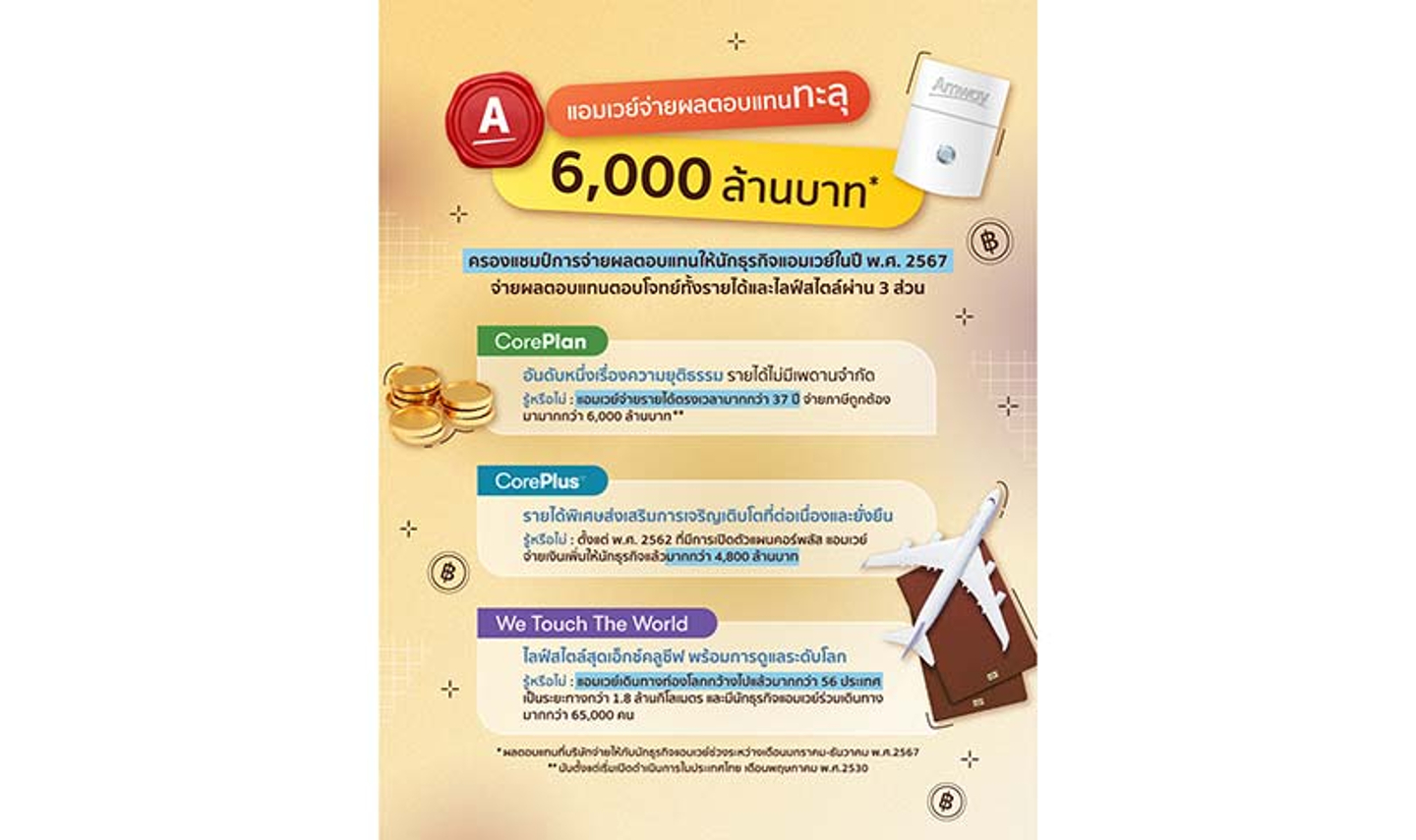 แอมเวย์จ่ายผลตอบแทนทะลุ 6,000 ล้านบาท