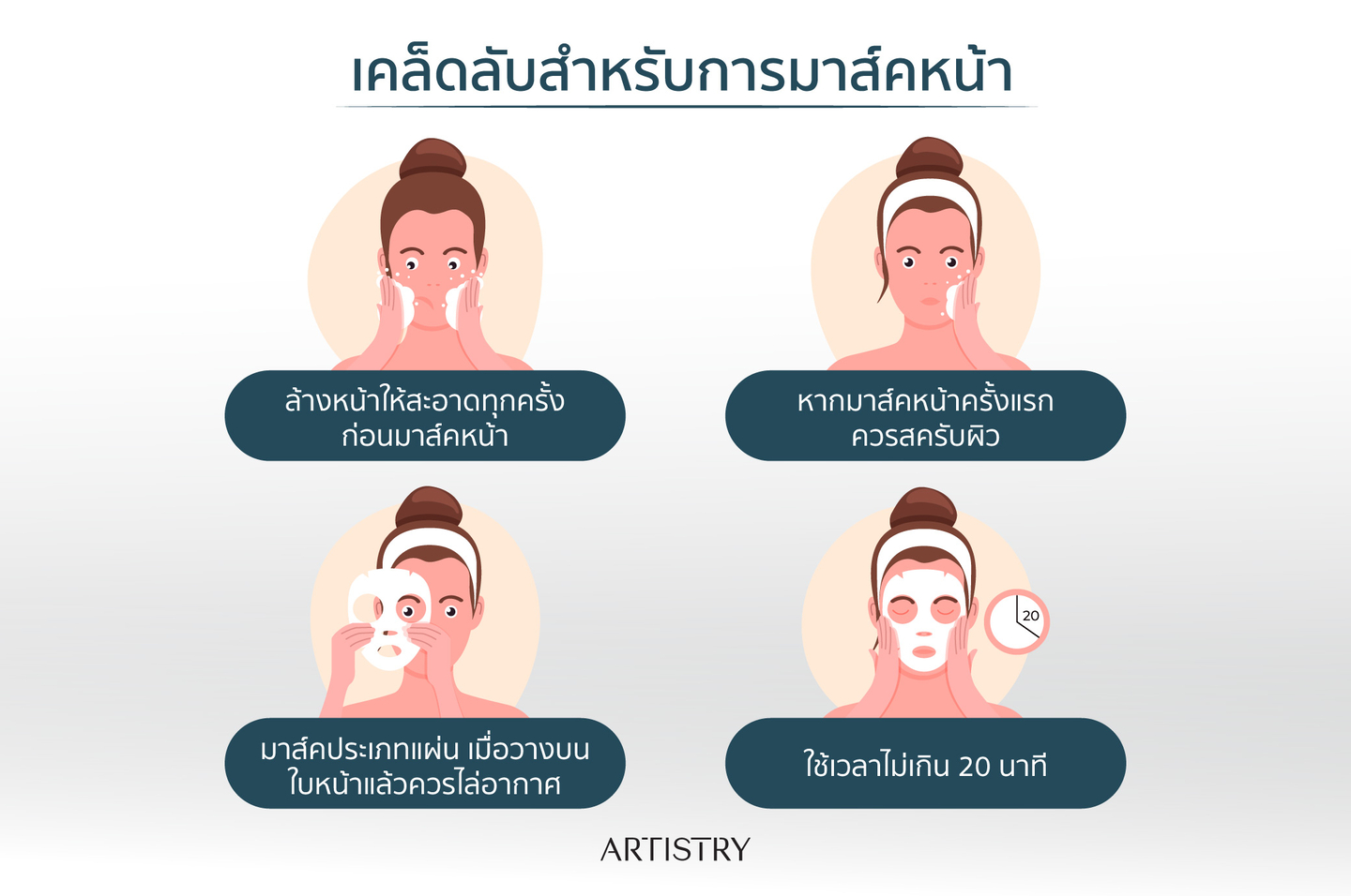 • ล้างหน้าให้สะอาดทุกครั้งก่อนมาส์คหน้า