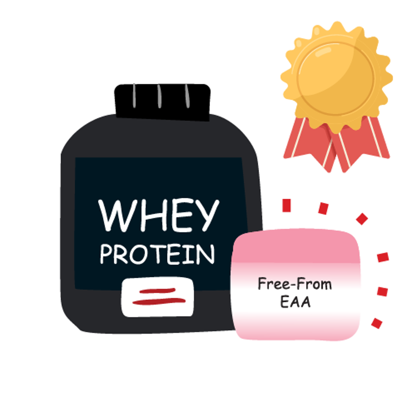 งานวิจัยของ Gwin และคณะ ตีพิมพ์ในวารสาร Journal of the international society of sport nutrition ปีค.ศ.2021 ศึกษาการได้รับผลิตภัณฑ์เสริมอาหารหลังจากออกกำลังกายประเภทที่ใช้ระยะเวลาสั้น โดยแบ่งเป็น 3 กลุ่มการศึกษาพบว่าการสังเคราะห์กล้ามเนื้อโปรตีน (Muscle Protein Synthesis, MPS)ไม่พบความแตกต่างระหว่างกลุ่มการศึกษา แต่พบว่าการเสริม Free-form EAA ร่วมกับโปรตีนเวย์ (whey) มีส่วนช่วยส่งเสริมปริมาณโปรตีนภายในร่างกาย (whole-body net protein balance)ที่ดีขึ้นกว่ากลุ่มที่ได้รับเพียงโปรตีนเวย์ และกลุ่มที่ได้รับมื้ออาหารที่มีการผสมสารอาหารที่จำเป็น (1)
