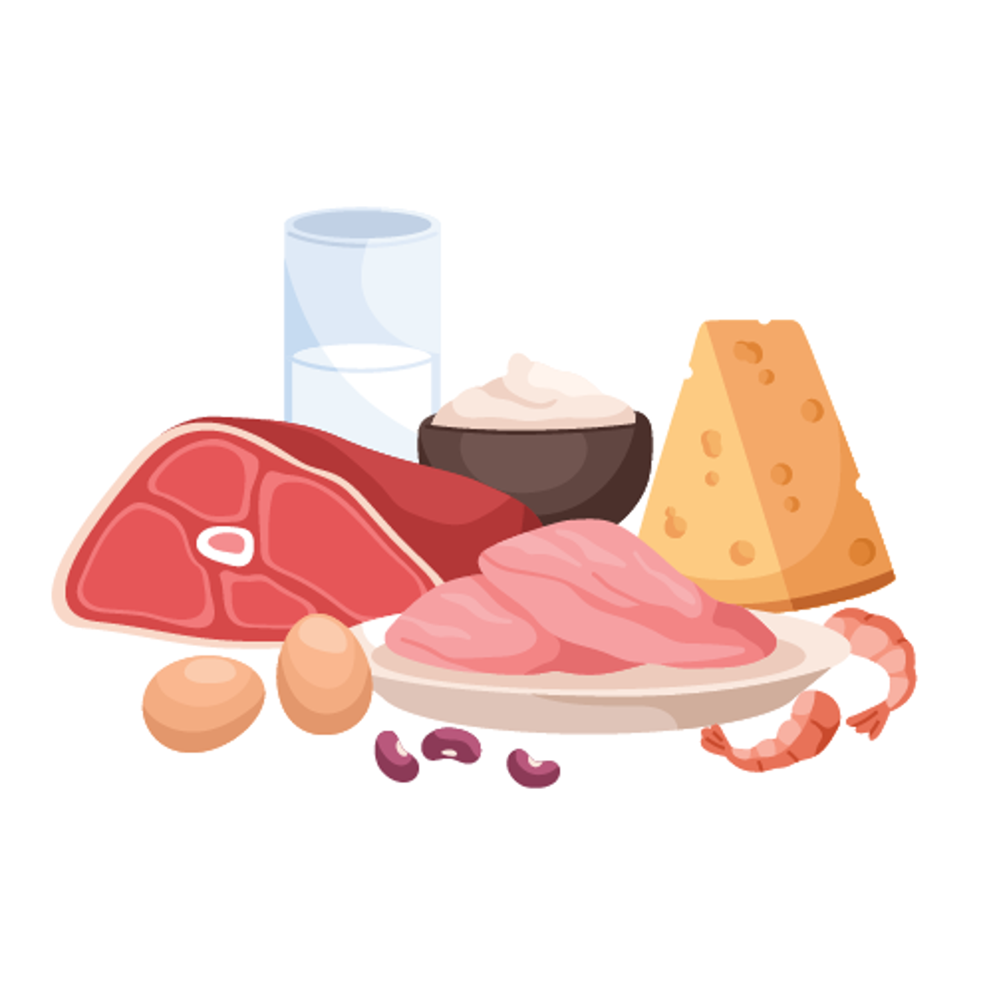 โปรตีนประกอบไปด้วยกรดอะมิโน 20 ชนิด แบ่งเป็น 2 กลุ่ม คือ กรดอะมิโนจำเป็น (Essential amino acid หรือ EAA) ซึ่งร่างกายสังเคราะห์ไม่ได้มีอยู่ 8-9 ชนิด และกรดอะมิโนไม่จำเป็น (Nonessentail amino acid) ซึ่งร่างกายสังเคราะห์ได้มีอยู่ 11-12 ชนิด หน้าที่หลักของกรดอะมิโนคือสร้างโปรตีนเพื่อใช้เป็นโมเลกุลโครงสร้างและโมเลกุลทำงาน (1-4)