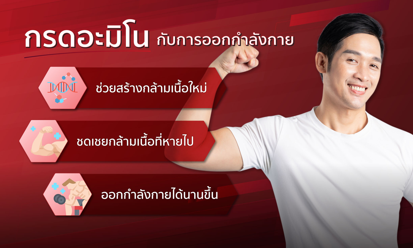 " การได้รับ Essential Amino Acid (EAA) ในรูปแบบอิสระ หรือ Free-form EAA ทำให้ร่างกายไม่ต้องนำอาหาร หรือสารอาหารที่ได้รับไปผ่านกระบวนการย่อยอาหาร ร่างกายจึงสามารถดูดซึมได้อย่างรวดเร็ว "