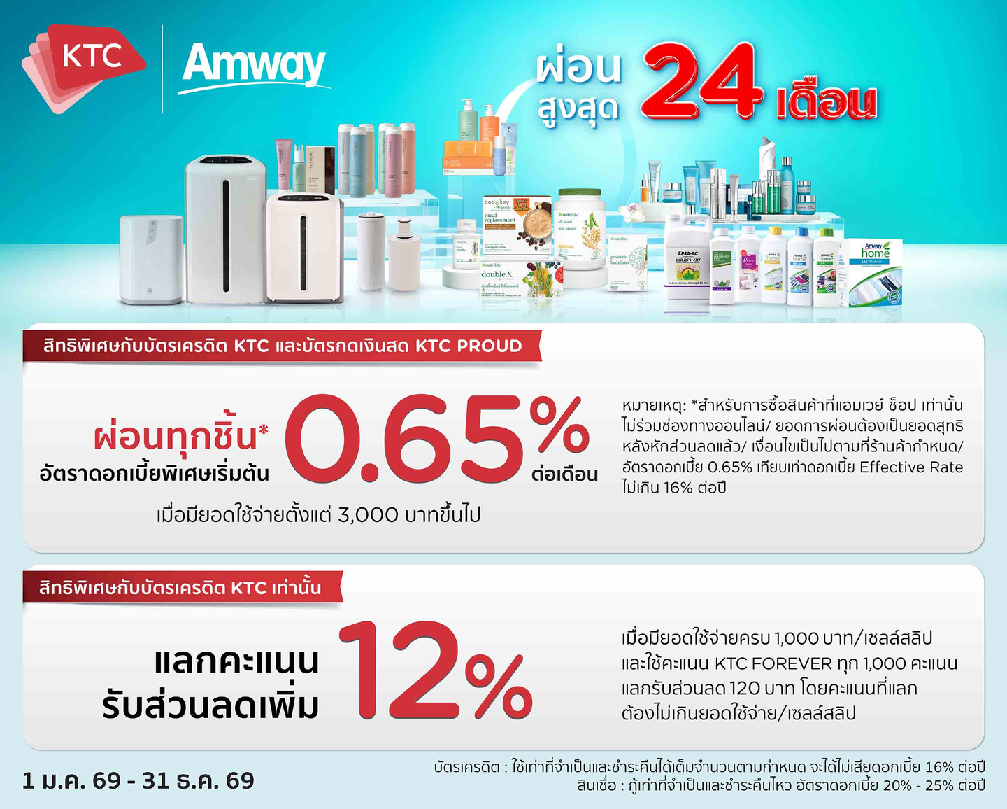 ผ่อนสบายทั้งร้าน อัตราดอกเบี้ยพิเศษ นานสูงสุด 24 เดือน* ที่ แอมเวย์ ช็อป ทุกสาขา
